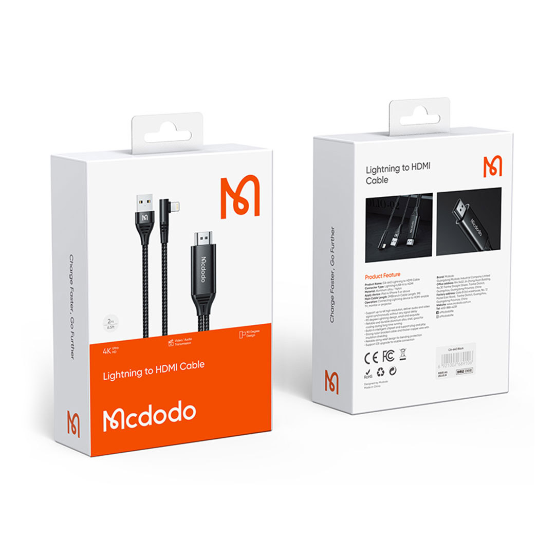 کابل تبدیل لایتنینگ به HDMI مک دودو 2 متر Mcdodo CA-6400 4K HD 90 Degree Elbow Design