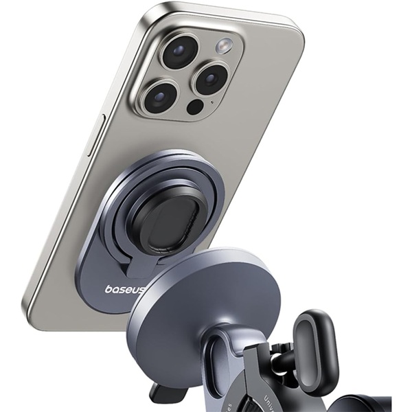 فاقد گیرههای فیزیکی است و از مکانیزم مغناطیسی برای نگهداری گوشی استفاده میکند. این طراحی باعث میشود تا گوشیهای مجهز به فناوری MagSafe یا دستگاههایی که از حلقههای فلزی پشتیبانی میکنند، بهراحتی و با اطمینان به هولدر متصل شوند. بنابراین، این هولدر برای گوشیهایی که از فناوری MagSafe بهره میبرند یا دارای حلقههای فلزی هستند، مناسب است.
