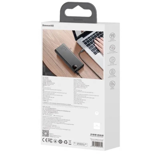 باتری پاوربانک بیسوس از نوع لیتیوم پلیمر بوده و دارای ظرفیت اسمی 20000 میلی آمپر است اما بازدهی واقعی آن 12000mAh (5V/6A) میباشد. توانی برابر با 65 وات داشته و از انواع فناوریهای شارژ سریع از جمله QC ، PD و SCP پشتیبانی میکند و در مقایسه با سایر هم نوعان خود 5 برابر سریعتر عمل کرده و قادر به شارژ کامل باتری مک بوک در مدت زمان 2 ساعت خواهد بود.