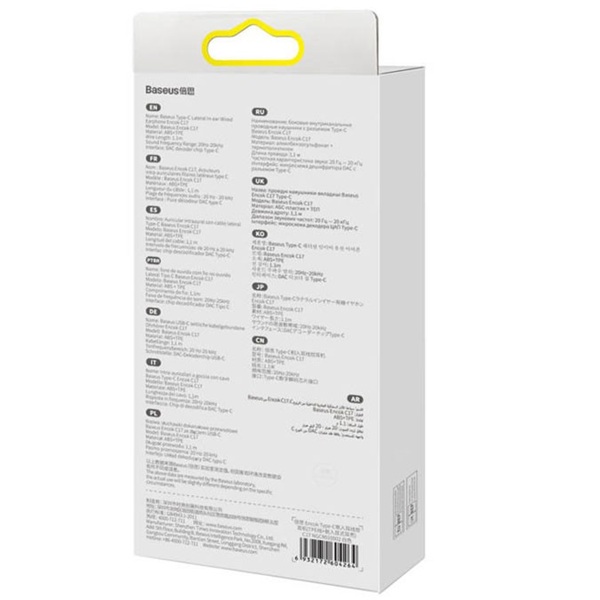 Baseus encok C17 in-ear wired headphones with usb type c microphone NGCR010002