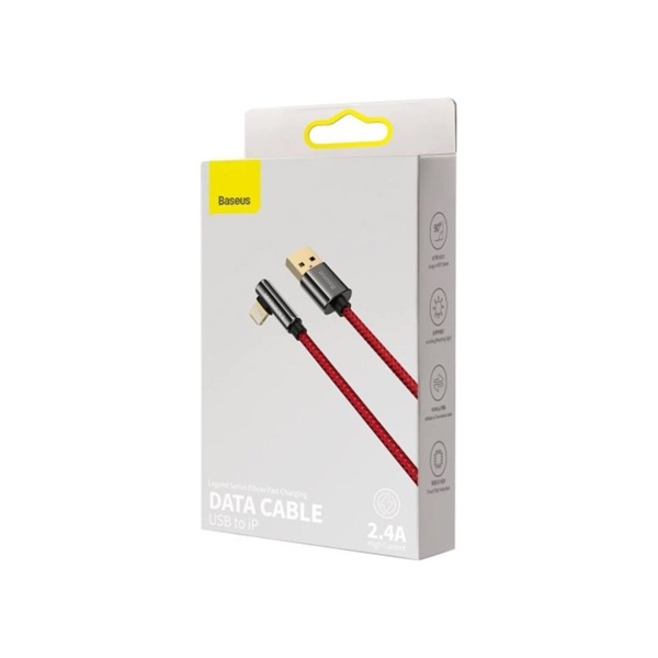 کابل لایتنینگ یکسر L طول 2 متر فست شارژ بیسوس Baseus مدل Legend Series Elbow 2.4A 2m CACS000109