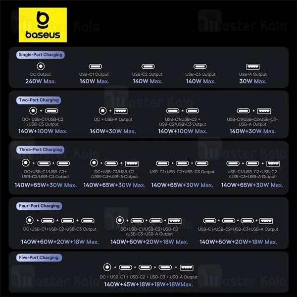 با توان مجموع 240 وات، امکان شارژ همزمان چندین دستگاه را با سرعت بالا و بهصورت ایمن