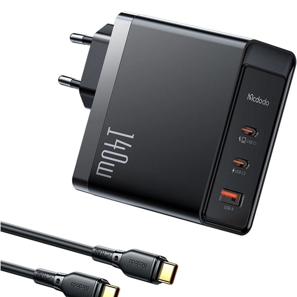آداپتور شارژ 3 پورت 140 واتی با کابل مک دودو Mcdodo 140W GaN5 Pro Fast Charger CH-2913