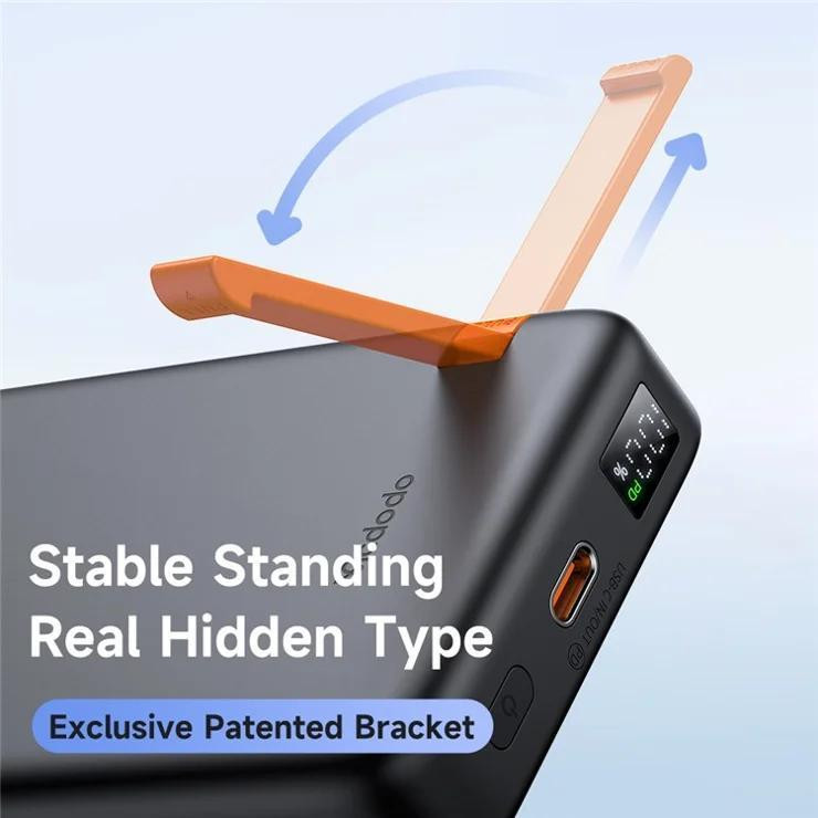 طراحی با استند داخلی این پاوربانک به شما این امکان را میدهد که گوشی خود را بهطور عمودی روی پاوربانک قرار دهید و از آن به عنوان یک استند برای تماشای ویدئوها یا مکالمات ویدیویی استفاده کنید. این ویژگی علاوه بر کارایی، راحتی را نیز به ارمغان میآورد.