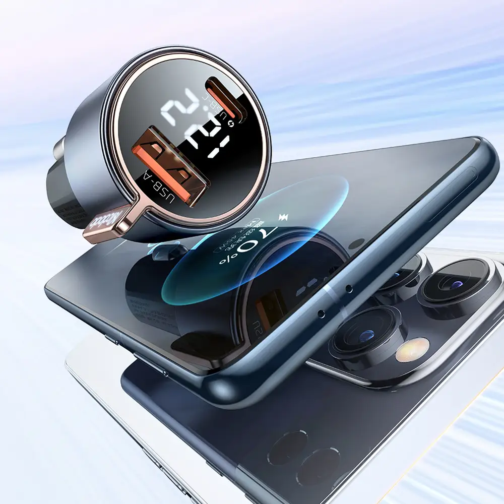شارژر خودرو Mcdodo 75W Dual با دو درگاه USB، امکاناتی هوشمندانه را به کاربران ارائه میدهد. دو پورت Type-C و USB-A به صورت همزمان امکان شارژ دستگاههای مختلف را فراهم میکنند. اما نکته جالب اینجاست که یک صفحه نمایش LED نیز در میان این دو درگاه قرار دارد که ولتاژ ورودی را به صورت لحظهای نمایش میدهد. این ویژگی نظارت پویا بر وضعیت باتری را به کاربران ارائه میدهد و اطمینان حاصل میشود که همیشه از سلامت باتری آگاه باشند.