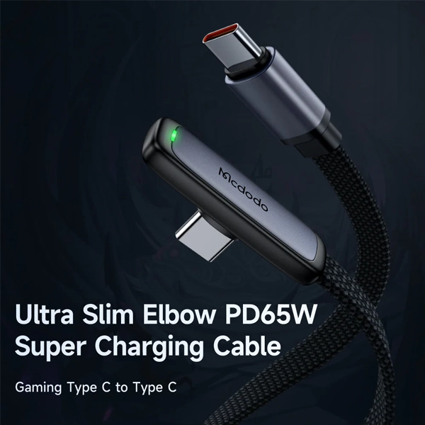 یکی از کانکتورهای کابل USB-C مک دودو مدل CA-3360 به صورت L طراحی شده تا در هنگام استفاده از گوشی در زمان شارژ، بدون مزاحمت کابل از گوشی استفاده کرده و به بازی کردن و یا کارهای روزانه بپردازید. بعلاوه قسمت کانکتور 90 درجهی کابل شارژ Mcdodo CA-3360 یک چراغ نشانگر LED تعبیه شده که به رنگ سبز جلوهنمای می کند؛ این نشانگر در تاریکی شب بسیار کمک کننده می تواند باشد.