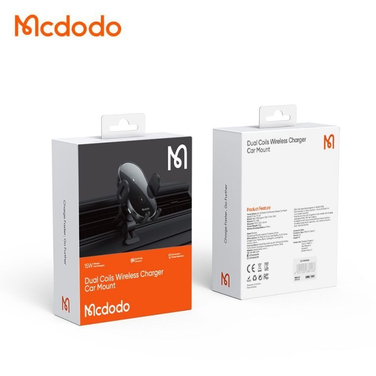 هولدر و شارژر وایرلس 15 وات مک دودو Mcdodo Dual Coil Wireless Charger Car Mount CH-1600