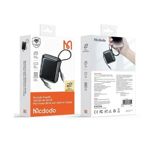 پاوربانک Mcdodo FreeKit MC-2550 یک محصول بینظیر برای افرادی است که همواره به شارژ مطمئن و سریع دستگاههای خود نیاز دارند. این پاوربانک با ظرفیت 10000 میلیآمپر ساعت و توان خروجی 22.5 وات، نه تنها قدرت بالایی دارد بلکه به دلیل طراحی جمع و جور و کابلهای داخلی، تجربهای متفاوت و راحت از استفاده از پاوربانک ارائه میدهد. این محصول مناسب افرادی است که به دنبال دستگاهی قابلحمل، پرقدرت و کاربردی برای استفاده روزمره هستند.