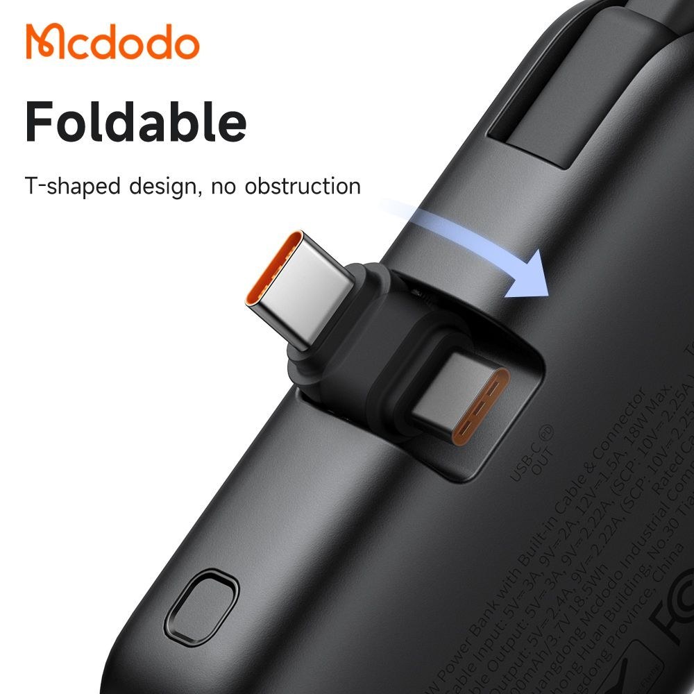 پاوربانک 22.5 وات 5000 با رابط تایپ سی و کابل متصل تایپ سی Mcdodo Power Bank 5000 mah MC-7760