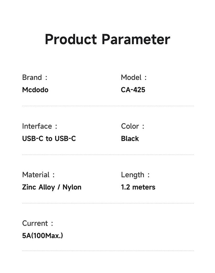 یکی دیگر از قابلیتهای مهم کابل مک دودو CA-4250، توان حداکثری 100 وات آن است. این میزان توان بالا، امکان شارژ سریع دستگاههای پرمصرف مانند لپتاپها، تبلتها و گوشیهای موبایل پیشرفته را فراهم میکند. توان 100 وات به کاربران این اطمینان را میدهد که میتوانند در کمترین زمان ممکن دستگاه خود را به صورت کامل شارژ کنند و از زمان خود به بهترین شکل بهرهبرداری کنند. این ویژگی به خصوص برای افرادی که همیشه در حال حرکت هستند و نیاز به شارژ سریع دستگاههای خود دارند، بسیار کارآمد است.