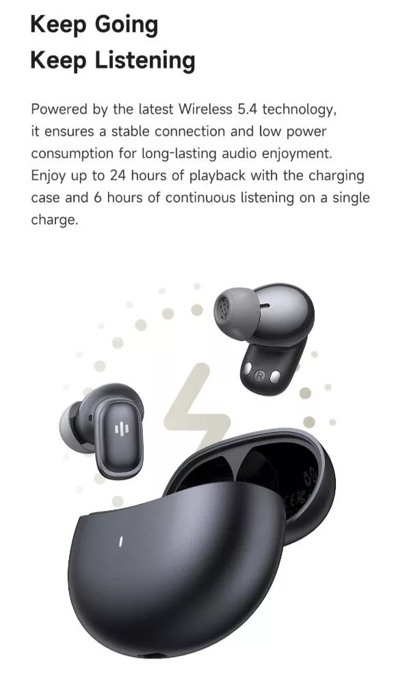 یکی دیگر از مزیتهای این محصول، عمر باتری بالا است. این هدفون در هر بار شارژ کامل، تا 6 ساعت استفاده مداوم را فراهم میکند و با وجود کیس شارژ، زمان استفاده به حدود 24 ساعت افزایش مییابد. چنین ویژگیای برای کاربرانی که در طول روز استفاده مداوم از هدفون دارند، بسیار ارزشمند است. باید توجه داشت که این میزان از شارژدهی با در نظر گرفتن شرایط آزمایشگاهی مورد سنجش قرار گرفته و میزان حجم صدا چیزی برابر با 50 درصد است، بنابراین ممکن است که در شرایطی که شما از هندزفری استفاده میکنید، این اعداد کمی متفاوت باشد.علاوه بر این، زمان شارژ هدفون تنها 1.6 ساعت و کیس شارژ حدود 2 ساعت است که نشاندهنده سرعت شارژ مناسب دستگاه است.