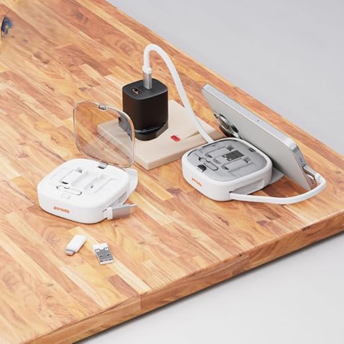 یکی از نقاط قوت اصلی این محصول، طراحی جمعوجور و قابلحمل آن است. تمامی اجزای این پک در یک محفظه کوچک و سبک قرار میگیرند که بهراحتی در کیف یا جیب شما جا میشود. این طراحی فشرده به کاربران اجازه میدهد که تمامی ابزارهای موردنیاز برای شارژ و اتصالات را در یک مکان داشته باشند و در هر زمان و مکانی به آنها دسترسی داشته باشند.