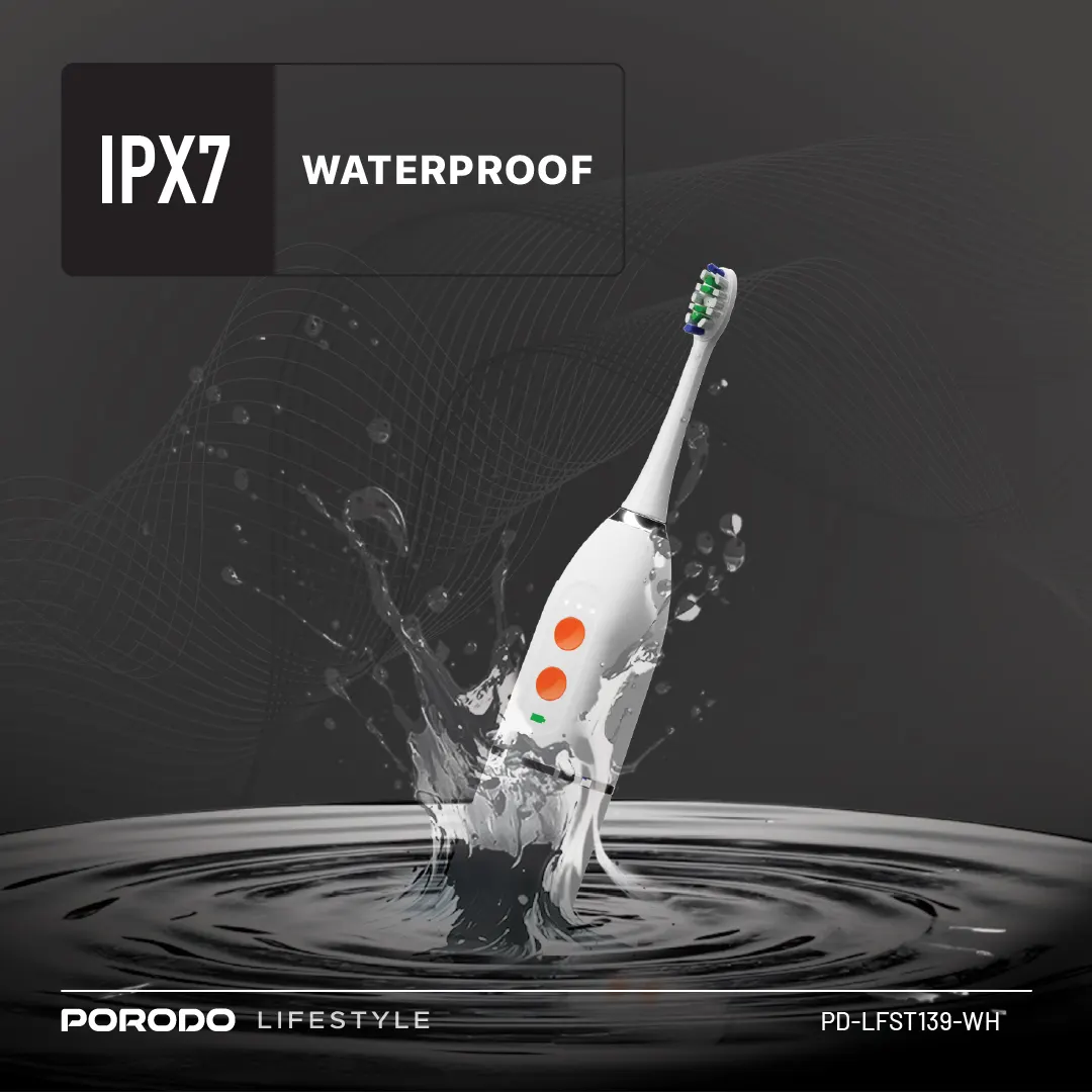 مسواک برقی و واتر فلاس پرودو دارای استاندارد ضدآب IPX7 است که امکان استفاده ایمن از آن را در حمام یا محیط‌های مرطوب فراهم می‌کند. این سطح از مقاومت در برابر آب، دوام دستگاه را افزایش می‌دهد و خیال کاربر را از بابت شست‌وشو و استفاده روزانه راحت می‌کند.ضدآب بودن دستگاه همچنین به بهداشت بهتر آن کمک می‌کند و تمیز نگه‌داشتن محصول را آسان‌تر می‌سازد.