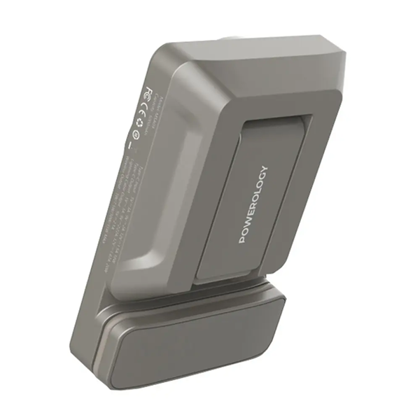 پاوربانک وایرلس 15 وات و تایپ سی 20 وات 5000 با قابلیت اتصال به دریچه کولر ماشین پاورولوژی Powerology مدل Power Bank With Magnetic Wireless Charger Car Mount PPBCHA32