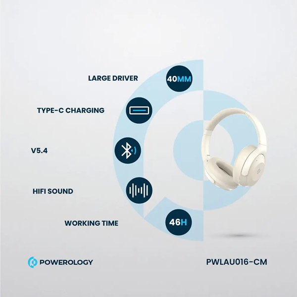 Powerology Hybrid ANC از بلوتوث نسخه 5.4 بهره میبرد که نسبت به نسخههای قبلی اتصال سریعتر، پایدارتر و کممصرفتری دارد. برد 10 متری به شما امکان میدهد بدون نگرانی از قطع ارتباط، آزادانه در محیط حرکت کنید.
