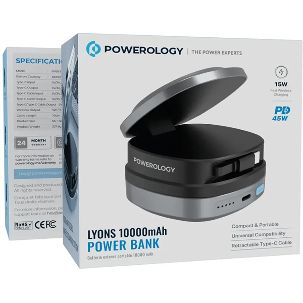 Powerology Lyons Power Bank 10000MAh PPBFT04BK
