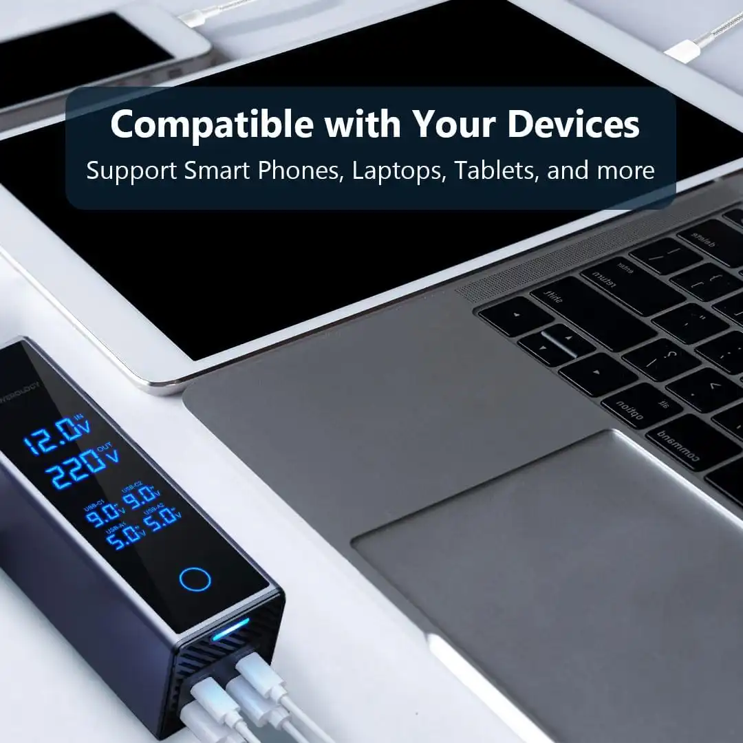 با توجه به وجود دو پریز AC و پورتهای شارژ سریع ، این اینورتر توانایی شارژ و تامین انرژی همزمان چند دستگاه را دارد . این ویژگی برای سفرهای گروهی ، استفاده در خودرو یا محیطهای کاری کوچک بسیار کاربردی است و نیاز به چندین مبدل و شارژر را برطرف میکند . کاربران میتوانند لپتاپ ، گوشی ، پاور بانک و دیگر وسایل الکترونیکی خود را به صورت همزمان و ایمن شارژ کنند .