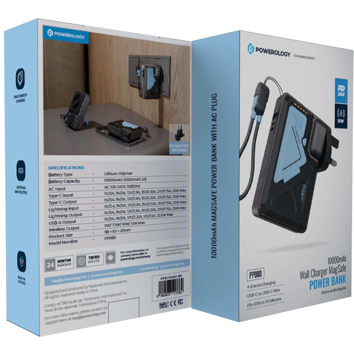Powerology 10000mAh Wall Charger MagSafe Power Bank PPBCHA80